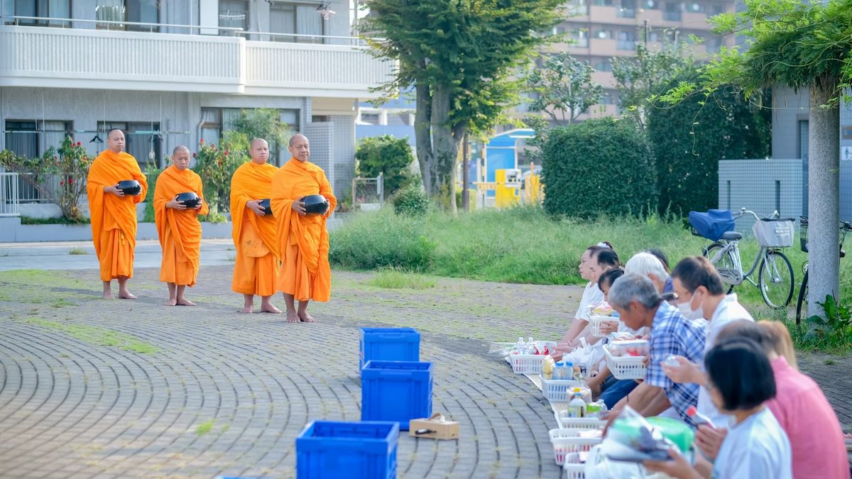 สำหรับทุกวันอาทิตย์ช่วงเช้าตรู่ ในฤดูสบาย ที่ไม่ใช่ฤดูหนาว ฝนไม่ตก และไม่ตรงกับวันอาทิตย์ต้นเดือน ทางวัดได้จัดให้มีการบิณฑบาตที่สวนสาธารณะซาซานามิ (さざなみ公園) ใกล้สถานีรถไฟอุทสึโนมิยะ (JR宇都宮駅) เอื้อเฟื้อให้สาธุชนทั้งชาวไทยและชาวญี่ปุ่น ได้มีโอกาสใส่บาตรแด่คณะสงฆ์ (สอบถามวันเวลาได้ที่ 028-652-8701)